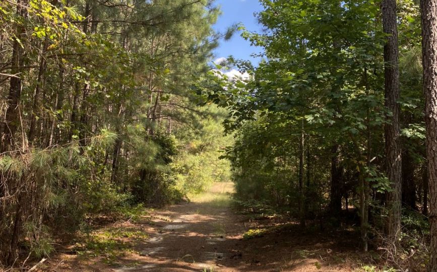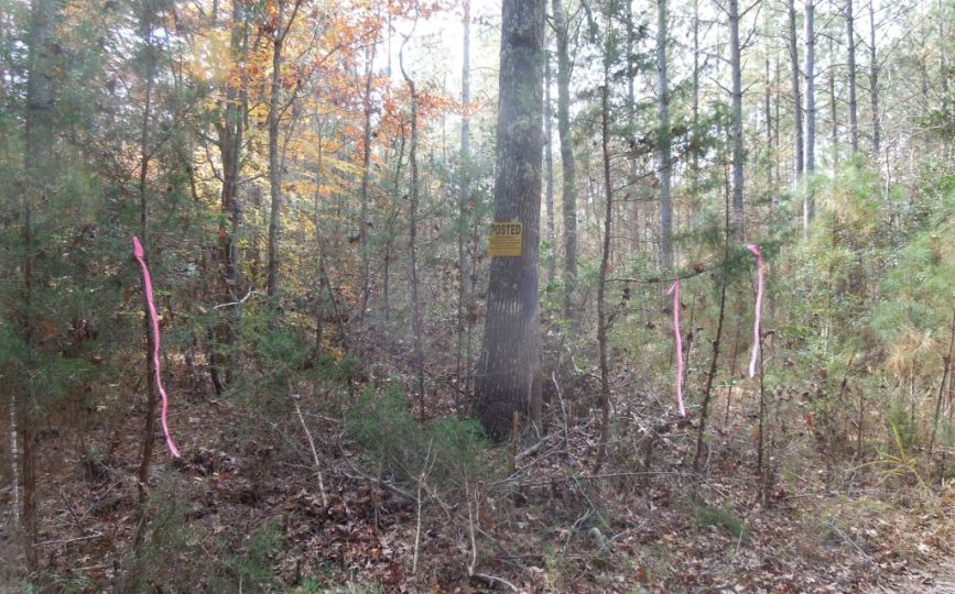 Cedar Grove Baptist Church address is 1408 River Rd. Henrico, NC 27842. The easement entrance to the property is on the east side of the church parking lot. There is a rope barrier across the church entrance to prevent large trucks from making U-turns through the parking lot. Take down the rope and put it back up when entering and leaving the property. The property begins a little past the 90 degree bend in the easement. Flagging and purple paint mark the property boundaries.